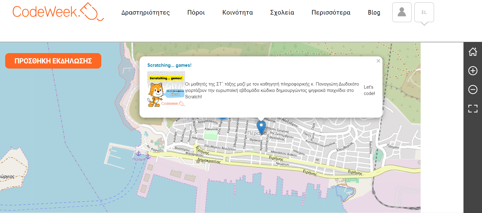 Κάθε σχολείο έχει τη δυνατότητα να οργανώσει δράσεις και να τις προσθέσει στον ψηφιακό χάρτη της εκδήλωσης. Η δική μας δραστηριότητα οργανώθηκε από τον καθηγητή Πληροφορικής κ. Δωδεκάτο Παναγιώτη ειδικά για τους μαθητές της ΣΤ΄ τάξης του σχολείου μας.
