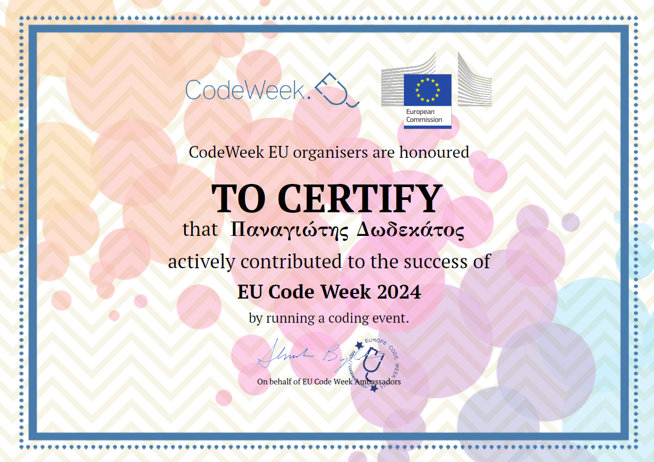 Και φέτος το σχολείο μας πήρε μέρος στην Ευρωπαϊκή Εβδομάδα Κώδικα. Πρόκειται για μια πρωτοβουλίας που έχει ως στόχο να κάνει τον προγραμματισμό και τον ψηφιακό γραμματισμό προσιτό σε όλους, με διασκεδαστικό και ενδιαφέροντα τρόπο.