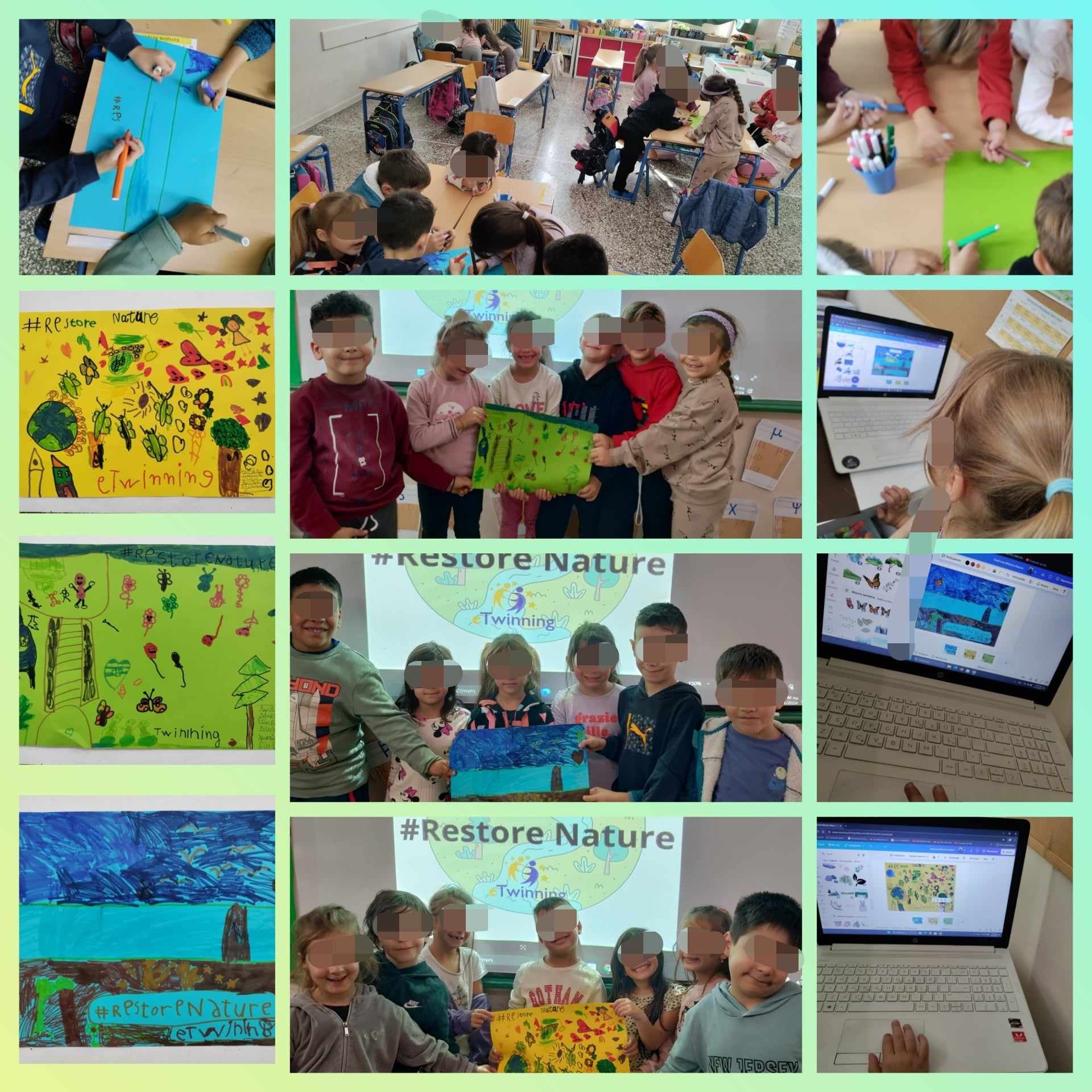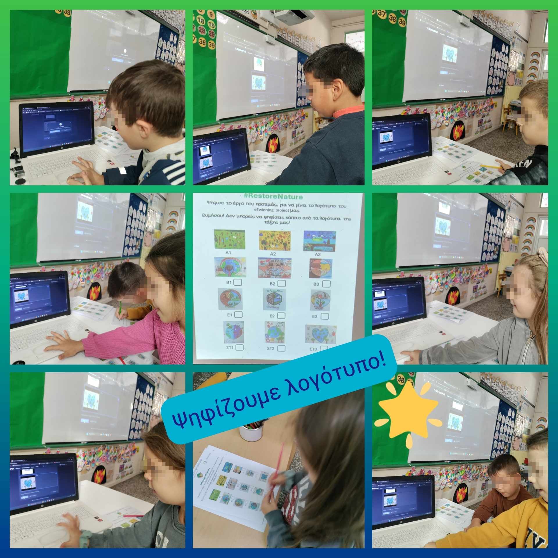Δημιουργήσαμε τρία λογότυπα για να λάβουμε μέρος στην ηλεκτρονική ψηφοφορία που θα αναδείξει το επίσημο λογότυπο του έργου μας. Ζωγραφίσαμε με θέμα το περιβάλλον και εξασκηθήκαμε στη γραφή του τίτλου του προγράμματος #RestoreNature και του λογότυπου του eTwinning.