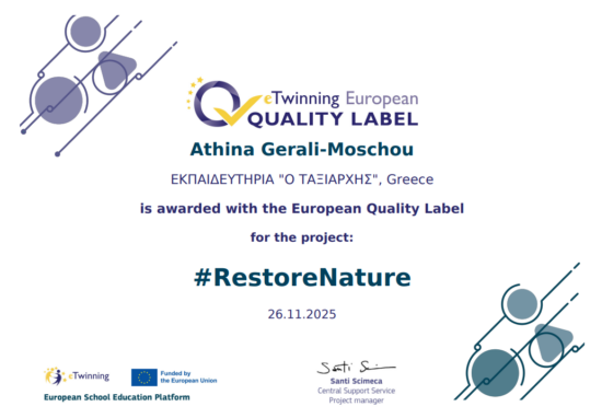 Mία νέα eTwinning συνεργασία έχει ξεκινήσει στο σχολείο μας! Το έργο “RestoreNature” στοχεύει στην ενημέρωση και ευαισθητοποίηση των παιδιών για τα περιβαλλοντικά προβλήματα της Ευρώπης, καθώς και στην εξεύρεση τρόπων αντιμετώπισής τους. Το πρόγραμμα αντλεί έμπνευση από τον Νόμο για την Αποκατάσταση της Φύσης (κανονισμός 2024/1991) που ψηφίστηκε από το Περιβαλλοντικό Συμβούλιο της ΕΕ.