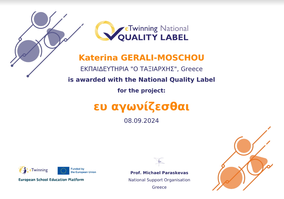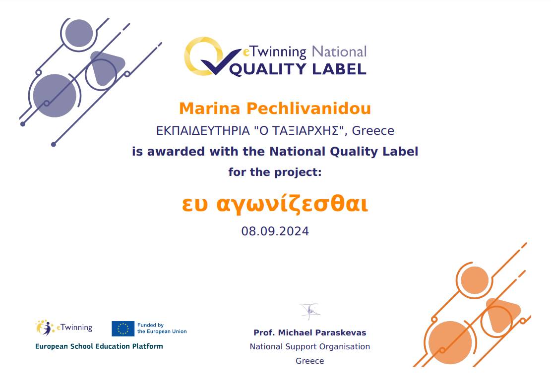 Με χαρά ανακοινώνουμε ότι απονεμήθηκαν 5 νέες Εθνικές Ετικέτες Ποιότητας σε εκπαιδευτικούς του σχολείου μας για τα έργα που εκπόνησαν κατά τη διάρκεια του σχολικού έτους 2023-2024.
