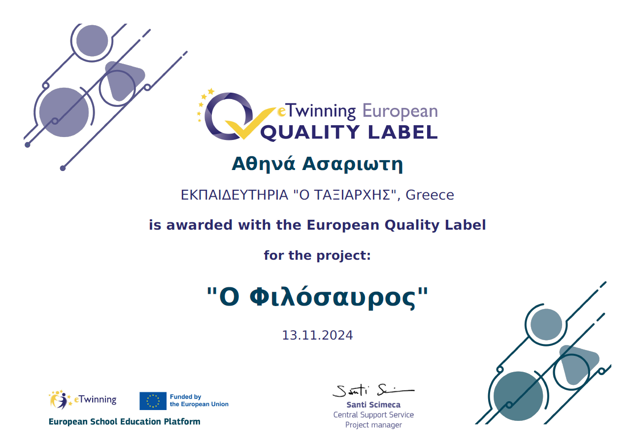 Η σκληρή δουλειά και η αφοσίωσή μας στο έργο επιβραβεύτηκαν με την εθνική ετικέτα ποιότητας eTwinning.